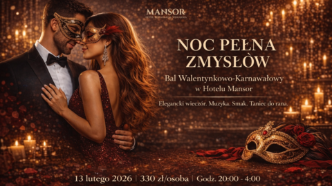 Bal Walentynkowo-Karnawałowy Zapraszamy na elegancką imprezę walentynkową w Hotelu Mansor. Walentynki nie muszą być przewidywalne, a karnawał nie musi kończyć się zwyczajnie! A piątek trzynastego? To tylko pretekst, żeby tej nocy wydarzyło się coś naprawdę dobrego. Bal Walentynkowo-Karnawałowy to starannie zaprojektowane wydarzenie, które łączy romantyczny klimat Walentynek z taneczną energią karnawału. To propozycja dla wszystkich, … Czytaj więcej